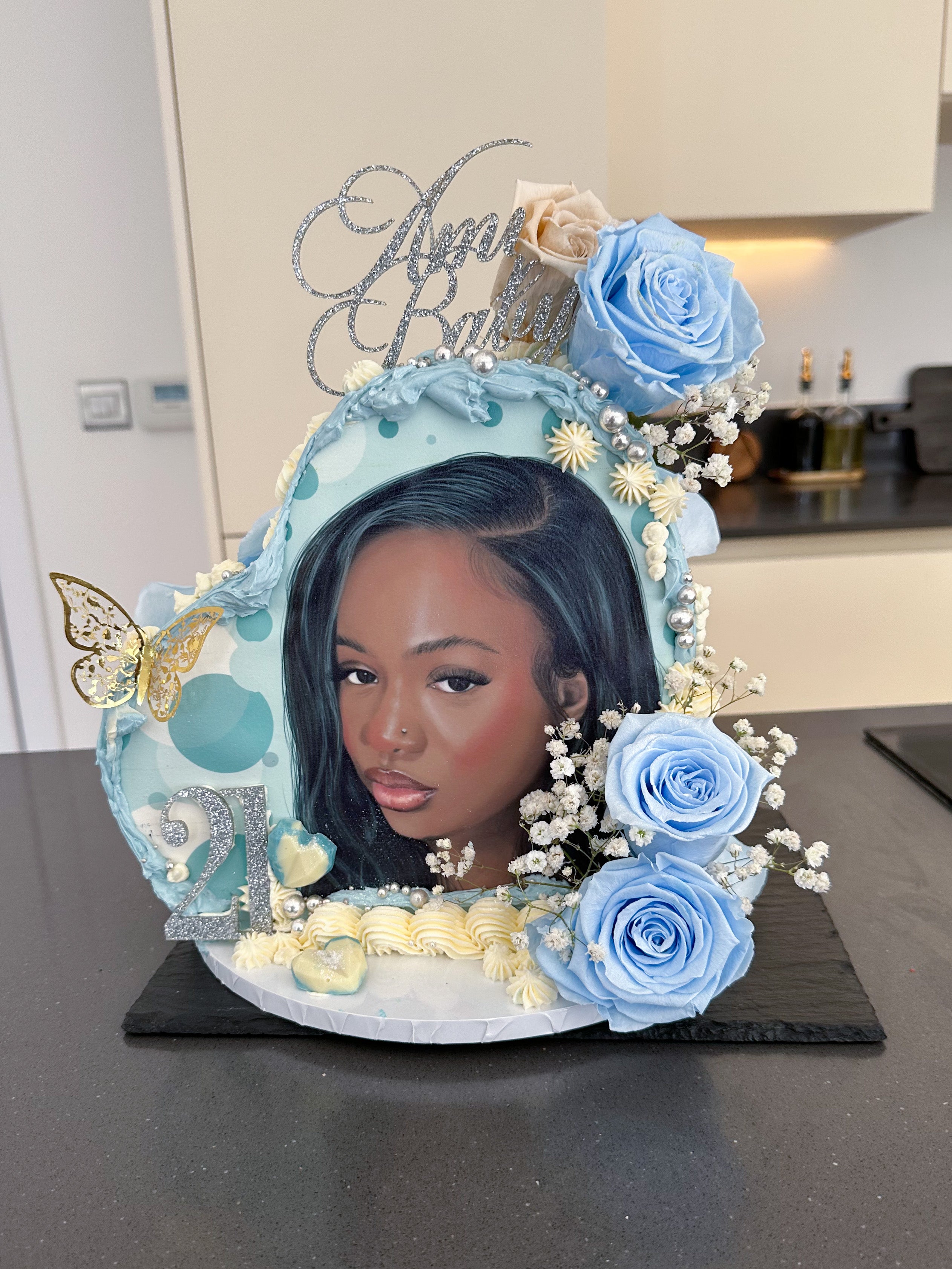 In addition to cake bouquets, I specialize in creating graphic cakes—personalized portrait illustrations on cakes that combine my love for graphic design and baking. These edible works of art are perfect for celebrating life’s most cherished moments in a truly unique and personal way. Who doesn’t want their face on a cake!